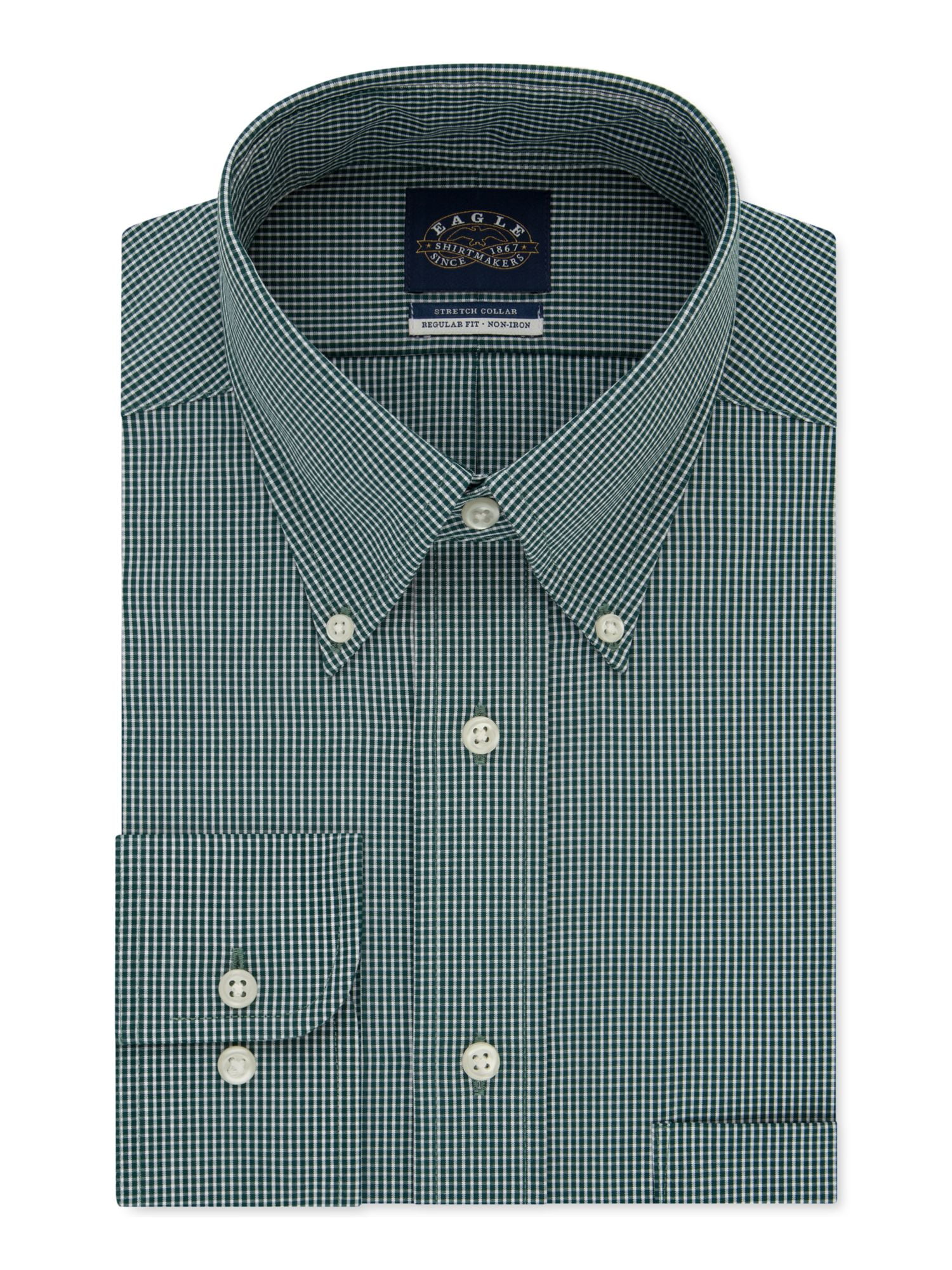 Eagle Men S Dress Shirt Regular Fit Non Iron Stretch Collar Check Green At Amazon Men S Clothing Store